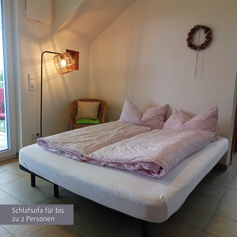 Unsere klimaneutrale Wohnung liegt im ersten Obergeschoss und ist über einen separaten Eingang erreichbar. Wir bieten Ihnen hohen Komfort mit dezentraler Lüftung und hochwertigen Materialien wie z.B. unsere handgefertigten Zirbenholz-Betten.